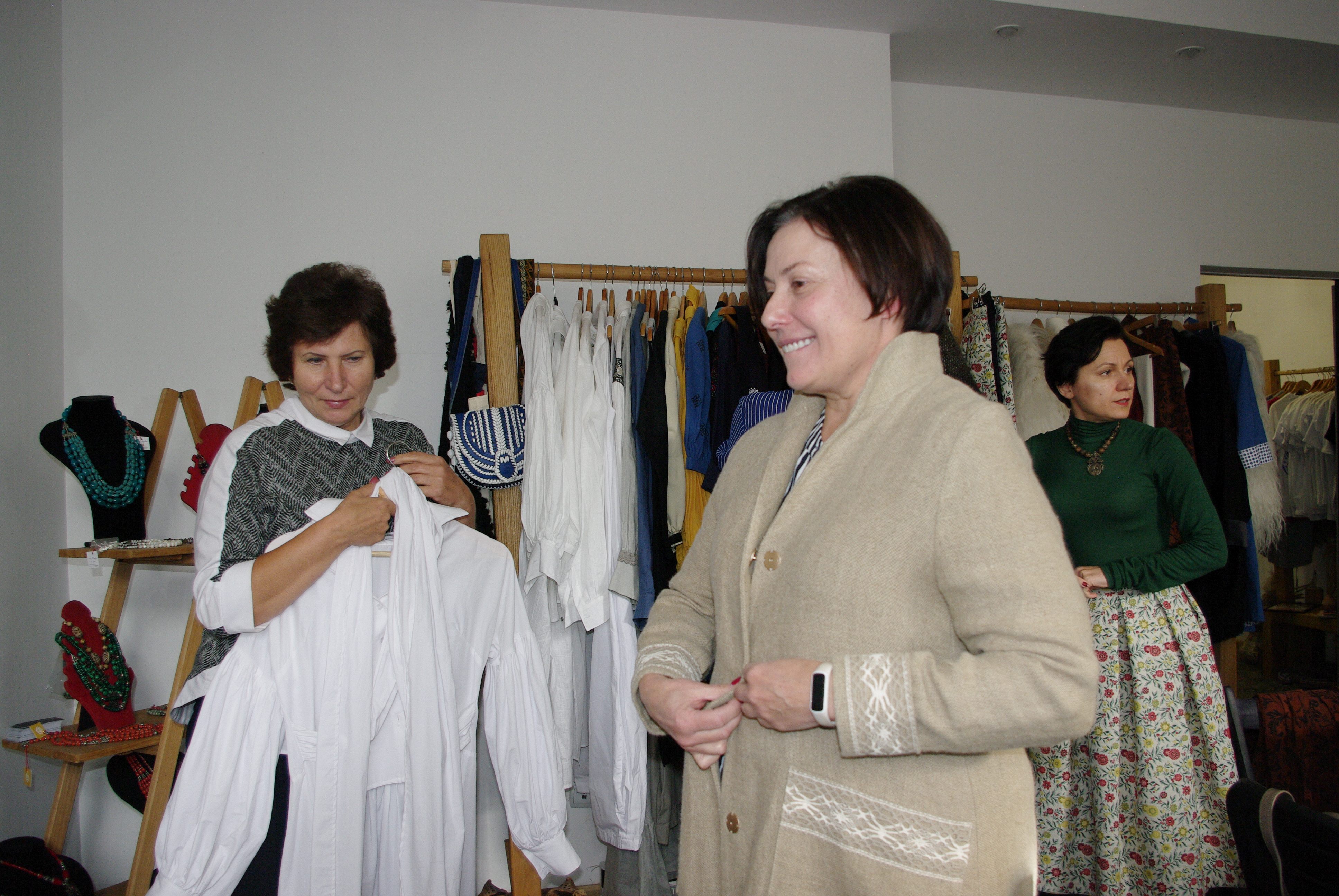 Членкині комітету не змогли встояти перед різноманіттям одягу й прикрас. Христина Патик кожній підібрала образ - чи то вишивану сорочку, чи то блузу, сукню, спідницю та навіть верхній одяг. І все це з натуральних екологічно чистих матеріалів ручної роботи! Компанія працює тільки з вовною, бавовною, шовком, диким шовком, кропивою, евкаліптом, льоном. Важлива максимальна безвідходність крою, оскільки прямокутники, які складають крій сорочки — кроються без відходів. Також до екологічності можна віднести довговічність дизайну, бо ці речі не виходять швидко з моди і можуть довго служити. Мало того — вони можуть залишатись в гардеробі і передаватись дітям.